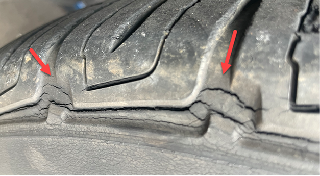 Aging tires could pose serious safety and performance issues with cracks beginning to show in as soon as six years. Noticeable cracks in your tires’ sidewalls or treads can a sign of aging and should be looked at seriously.